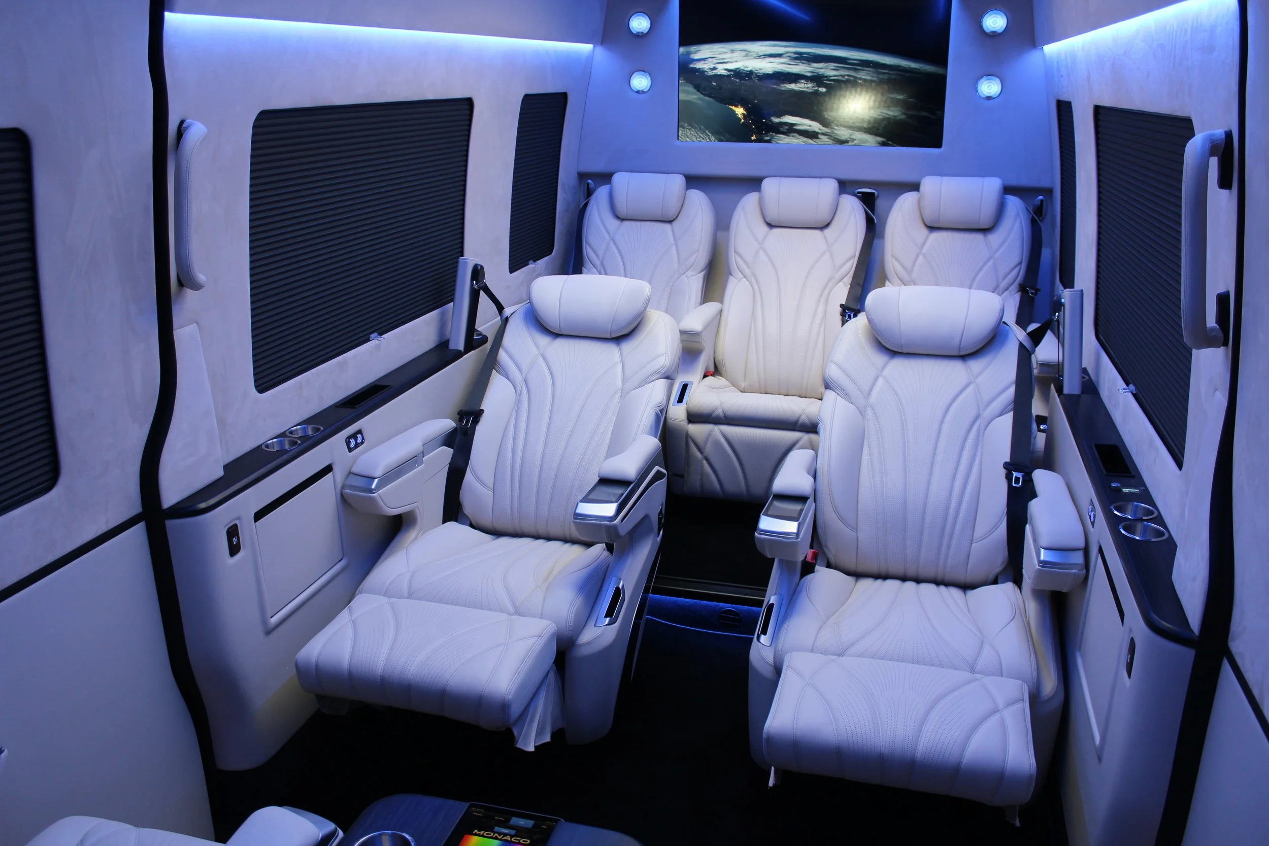 The Monaco Luxury features our upgraded seating with all functions controlled via a touchscreen control panel. These first-class seats, available in a variety of colors include full recline, multi-level heating and cooling, 3-type massage, wireless chargers, ambient lighting and electric footrests.
